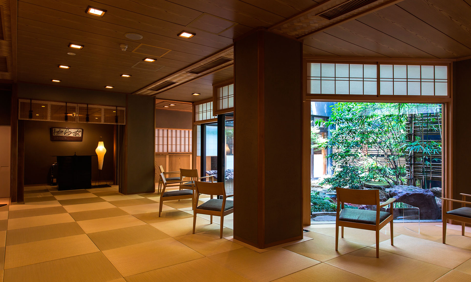 創業800 余年の「あらや滔々庵」は、現在の主人で18 代目となる由緒正しき老舗旅館です。館内の調度品のすべては、主人の目利きによって選ばれます。細部まで行き届いた品格ある純和風の建物の各所には、大正時代に逗留した北大路魯山人の作品が残されており、一方では、主人好みの現代アートもしつらえられています。ロビーのラウンジチェア、食事処の椅子、客室の椅子やサイドテーブルなどを納品しました。