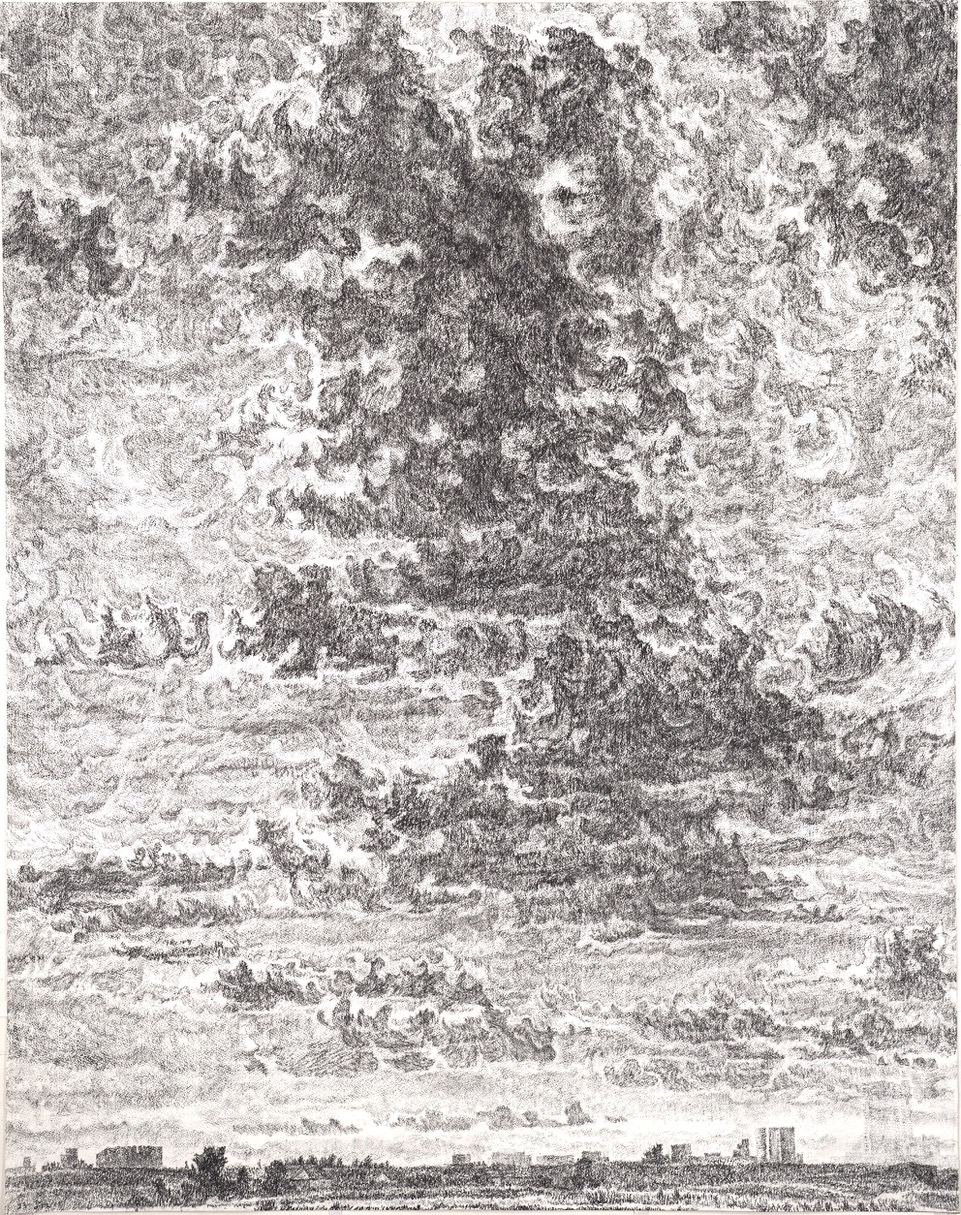雲の形を捉えようと試みるが、それはひと時も止まらず、画面に目を落とした隙にも形を変えてしまう。いつまでたっても追いつかない視線の軌跡が無数の線となり画面を覆う時、目には見えない空間の流動が現れてくるようで面白い。