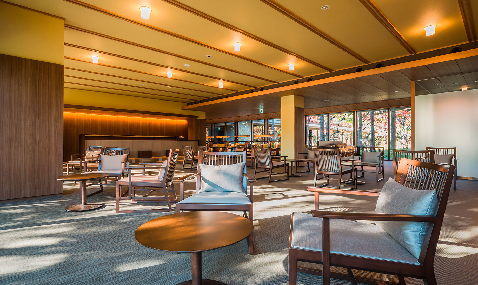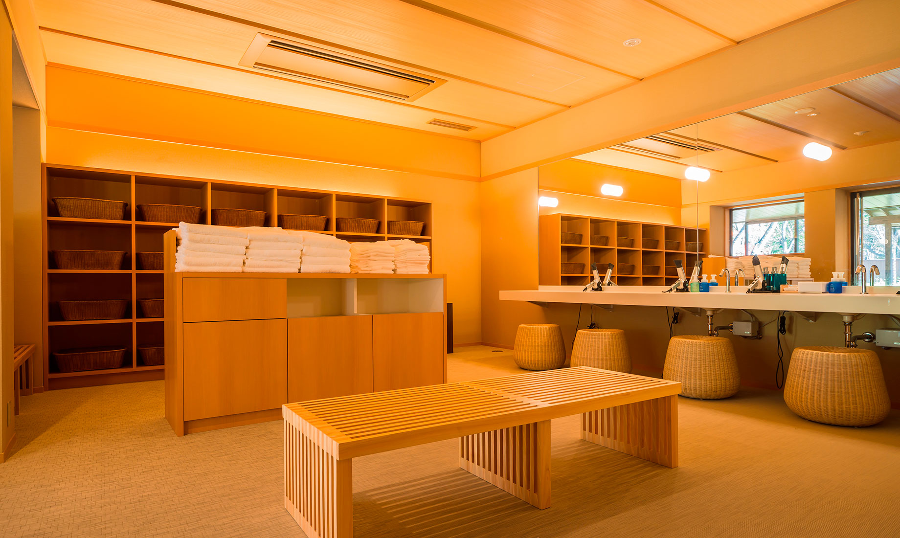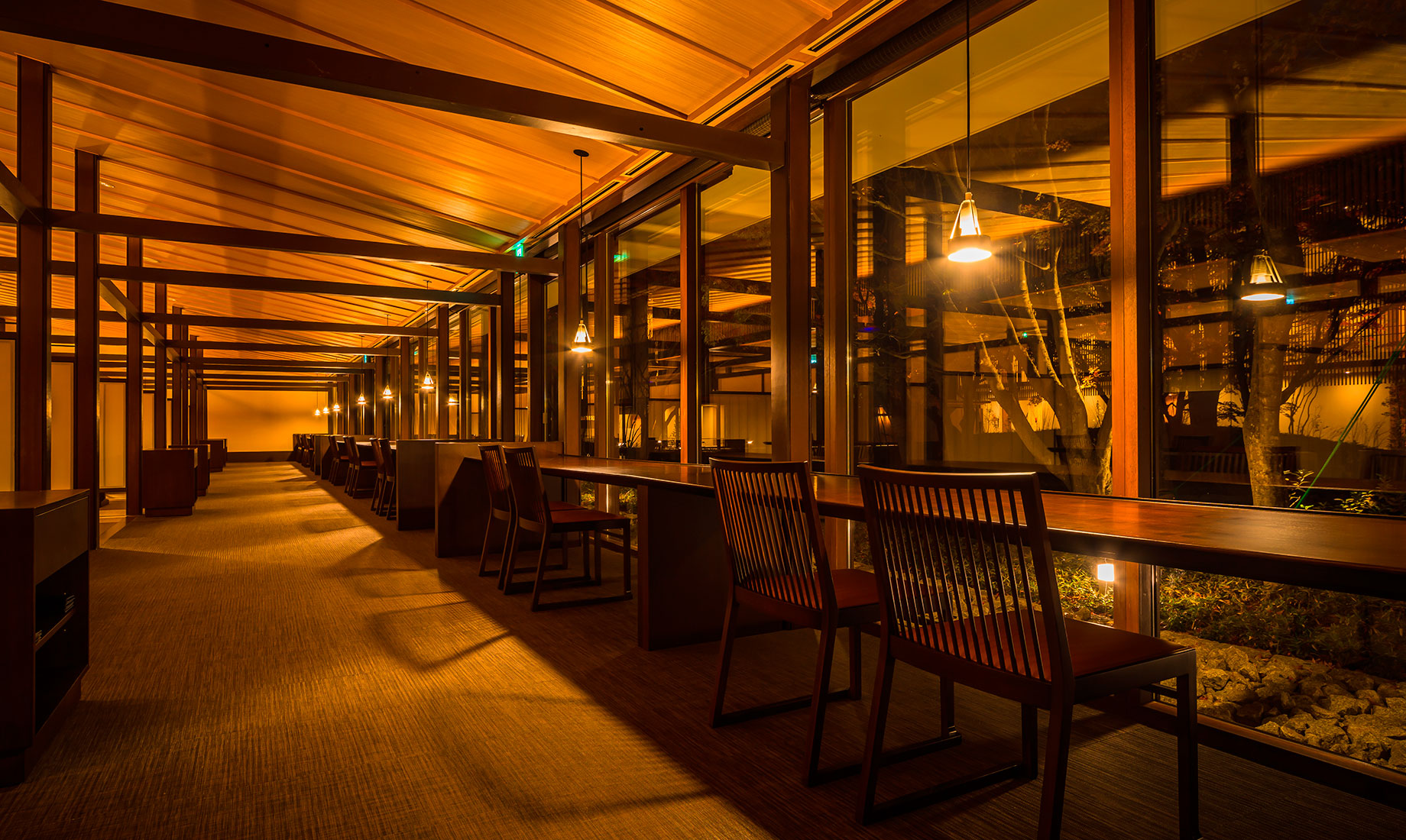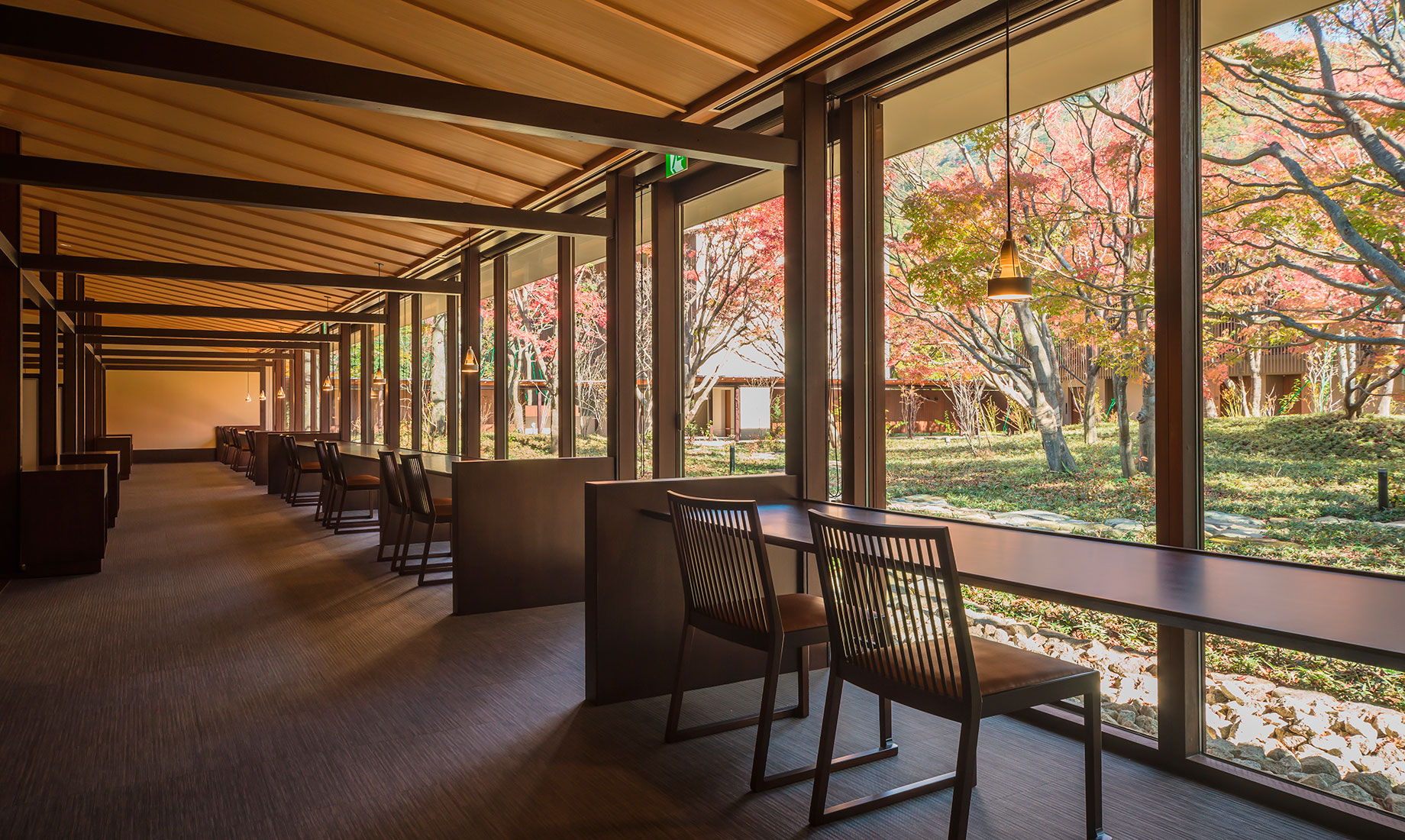 星野リゾートが運営する温泉旅館ブランド「界」で、初めての新築物件としてオープンした「界 鬼怒川」。鬼怒川の渓流に面した小高い丘の上に建つ瀟洒な温泉宿です。当社では、食事処のブースの施工と、ロビーや客室、食事処などのFF&E(家具・什器・備品)の製作を担当しました。日本と栃木のものづくりの技術を集め、定番品から、特注による1 点限りの家具や照明器具などを製作し「界 鬼怒川」のコンセプトの実現に取り組みました。