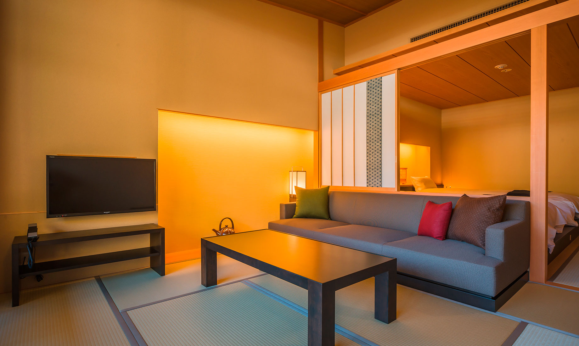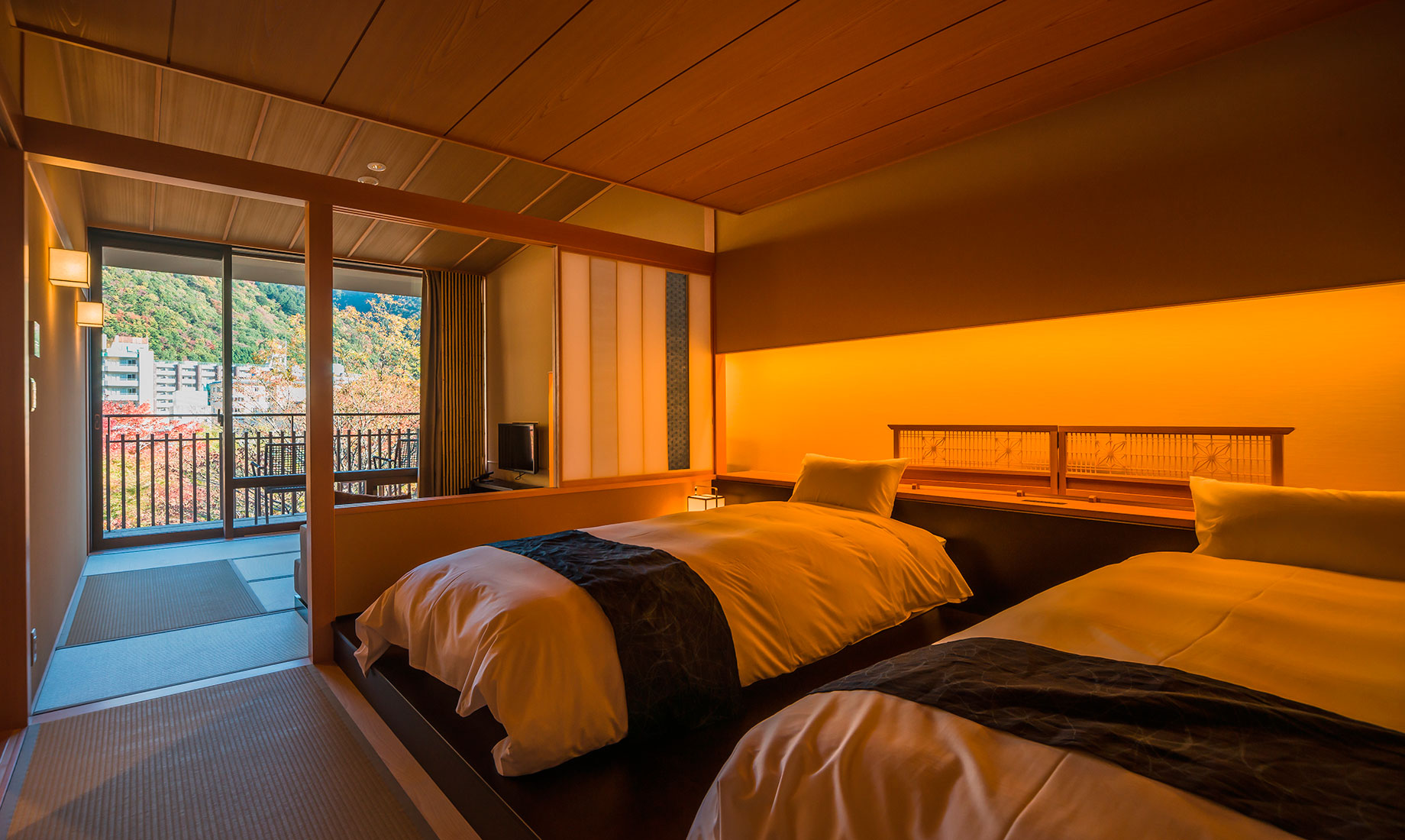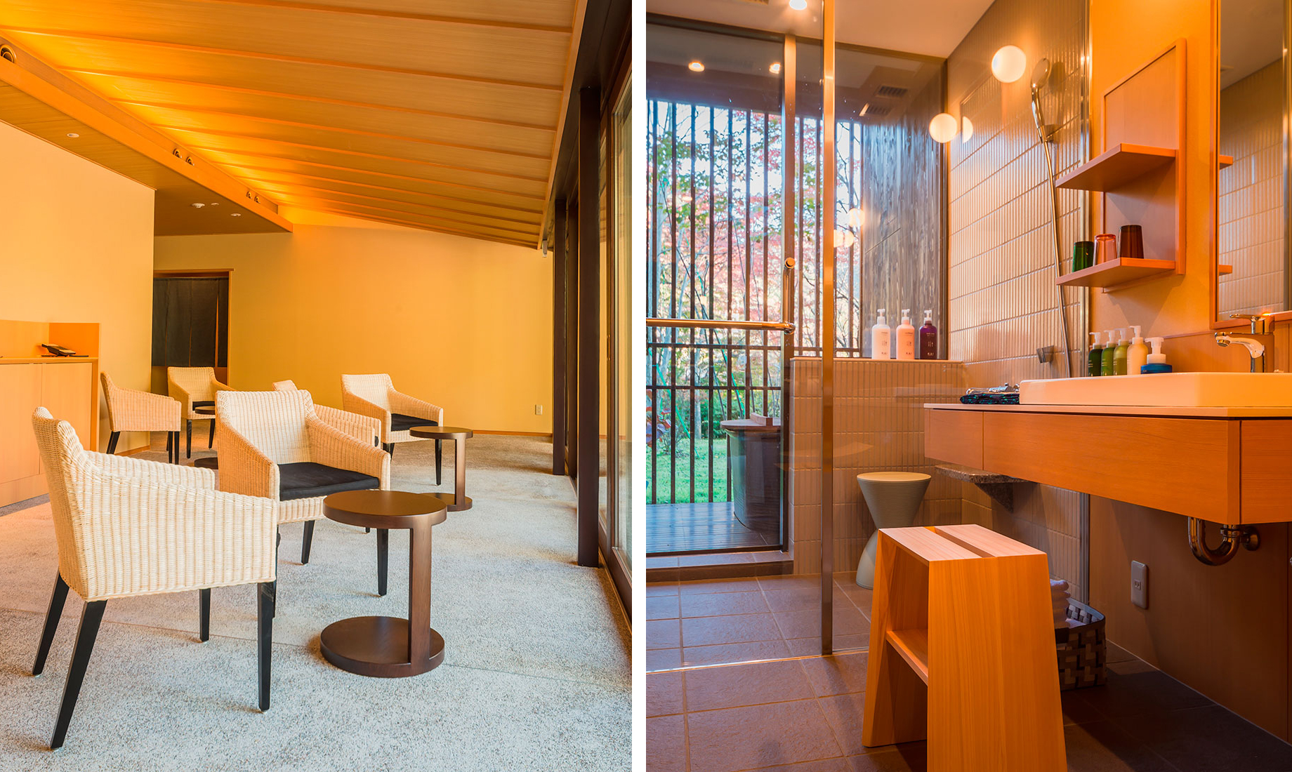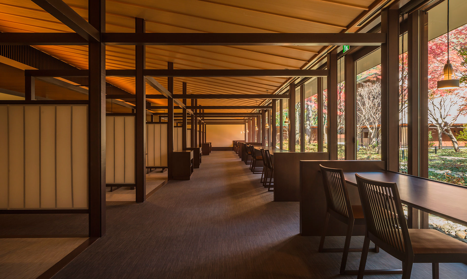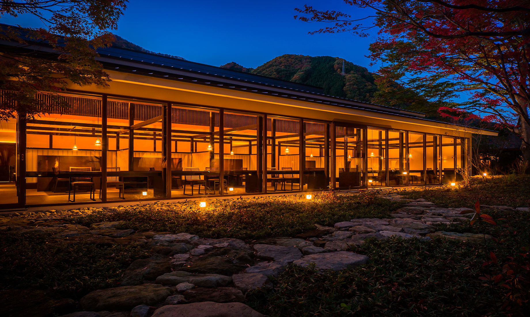 星野リゾートが運営する温泉旅館ブランド「界」で、初めての新築物件としてオープンした「界 鬼怒川」。鬼怒川の渓流に面した小高い丘の上に建つ瀟洒な温泉宿です。当社では、食事処のブースの施工と、ロビーや客室、食事処などのFF&E(家具・什器・備品)の製作を担当しました。日本と栃木のものづくりの技術を集め、定番品から、特注による1 点限りの家具や照明器具などを製作し「界 鬼怒川」のコンセプトの実現に取り組みました。