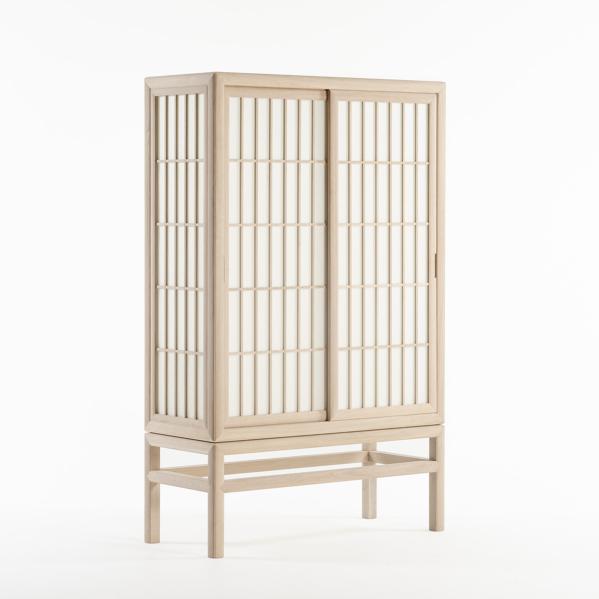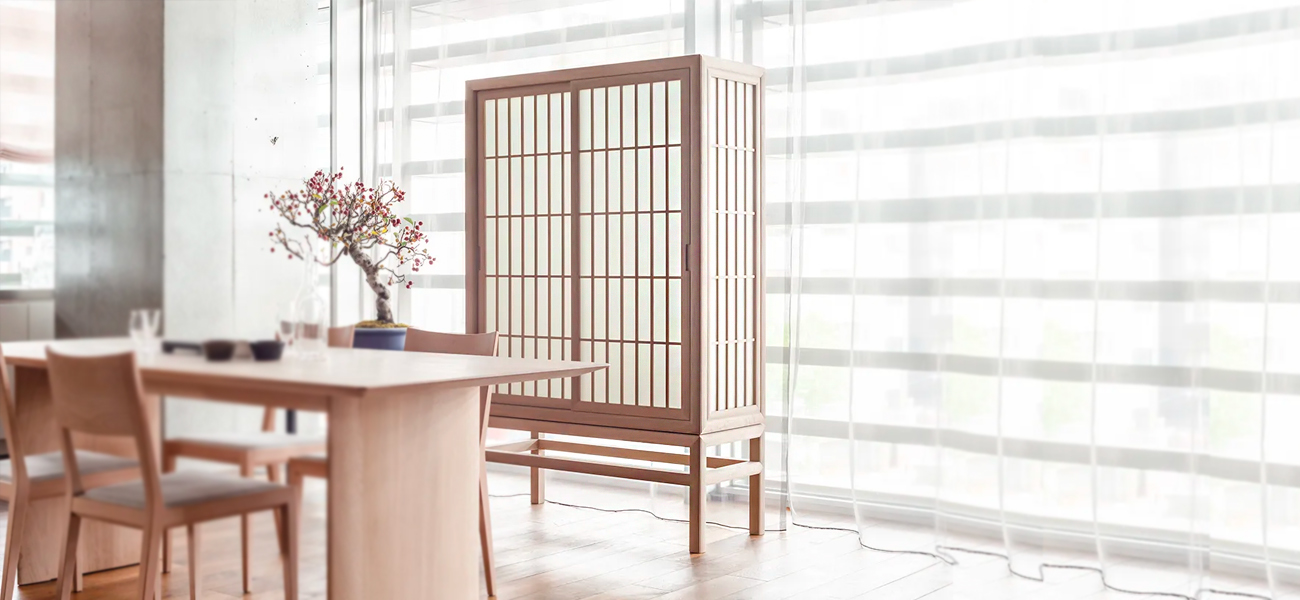 手漉き和紙は丈夫で風雨にも強く、夏の日には太陽の熱を和らげ、寒い冬の日には暖かな陽の光を通しながら冷たい風を遮ってくれます。住宅から姿を消しつつある障子の世界観をキャビネットという小さなスケールに縮小し、本物の素材を用いることで障子が持つ情緒的な雰囲気を表現しました。