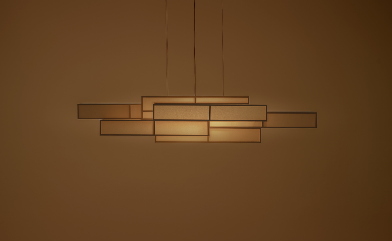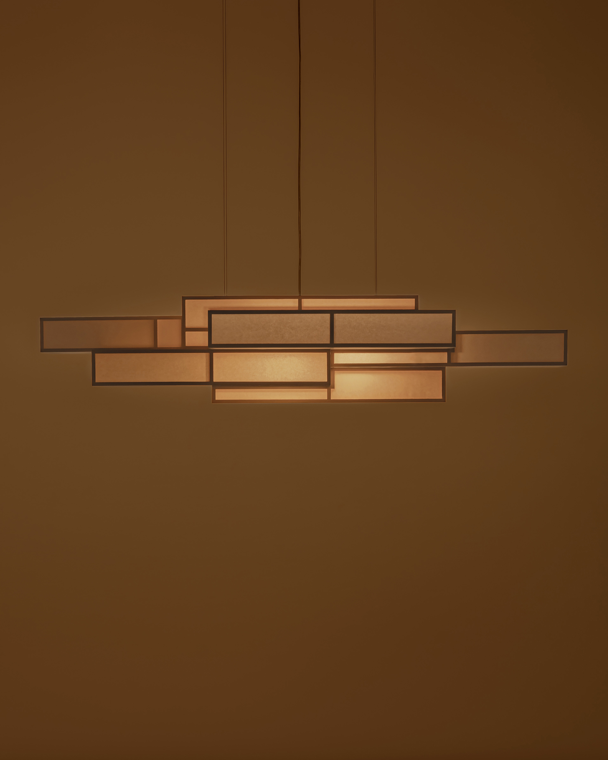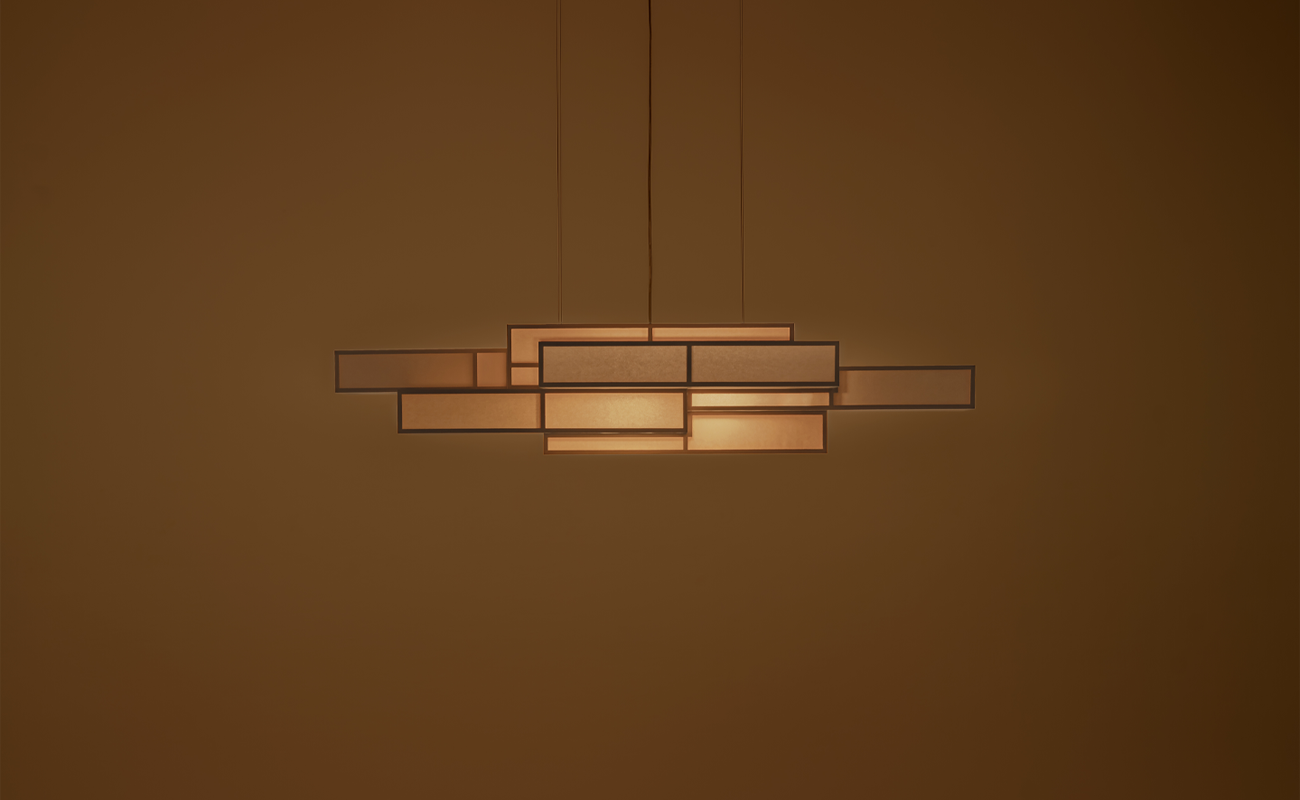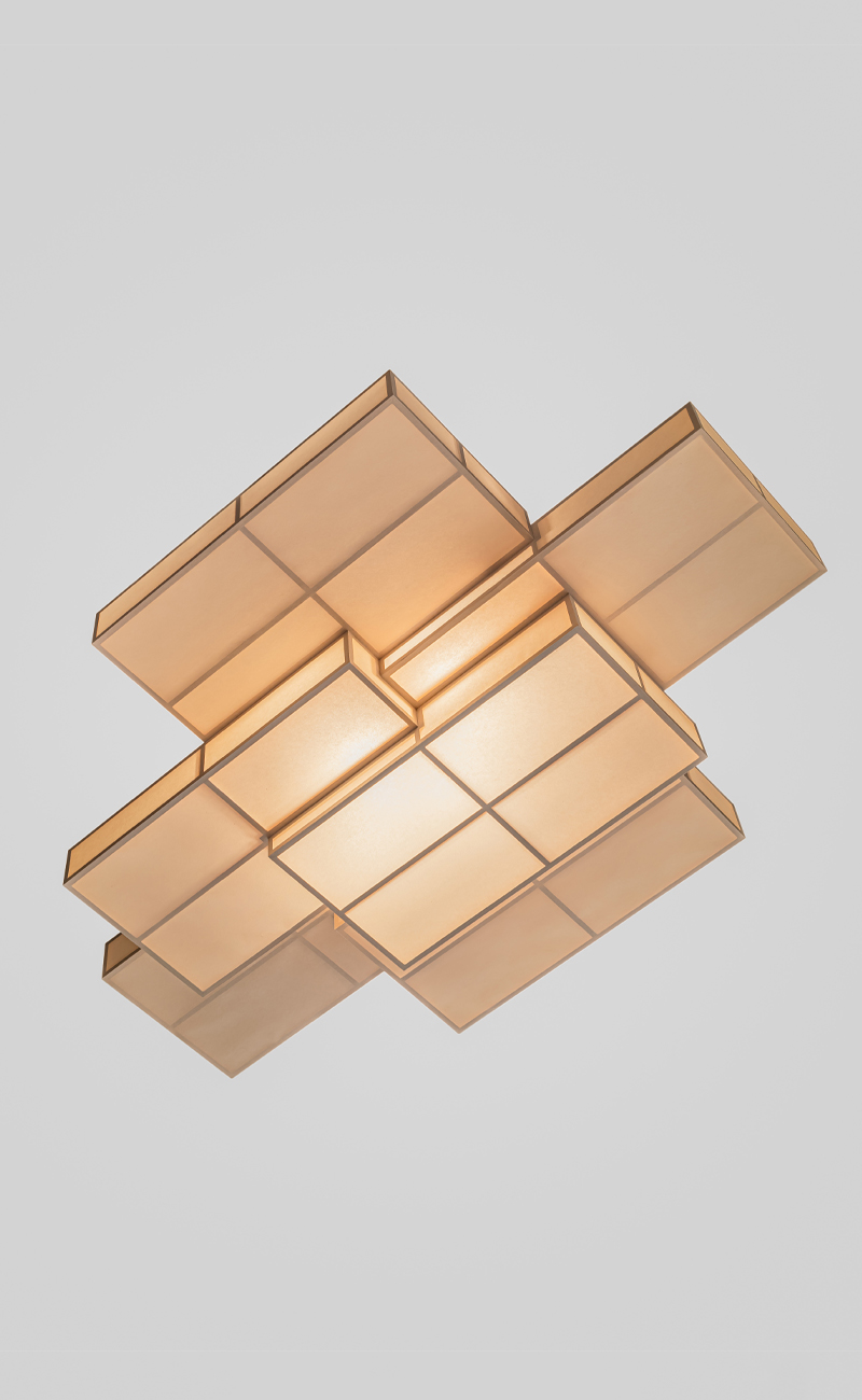 日本特有の木組み技術と美濃和紙を組み合わせた Amagumo(天雲)。指物細工による端正な直線を持つ箱は、複雑な構造やおさまり、強度、仕上げの美しさに徹底的にこだわり、試行錯誤を重ねることで生まれました。この職人技が凝縮された箱を重ね合わせ、意図的にずらすことで生まれる立体的な不完全さは、上空を漂う変化に富んだ雲の軽やかさや無重力感を表現しています。同時に、見る角度によって異なる表情を見せるデザインは、自然界の不規則性や無作為な美しさを想起させます。