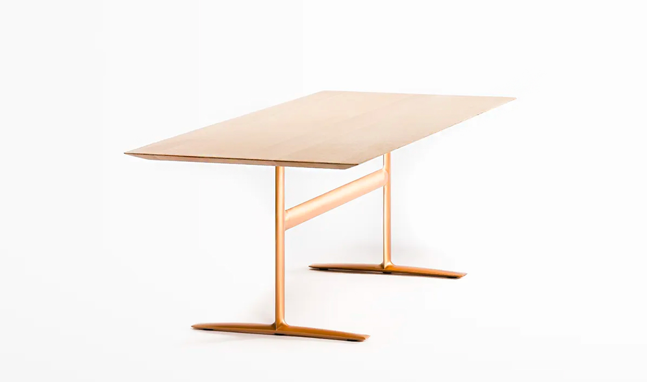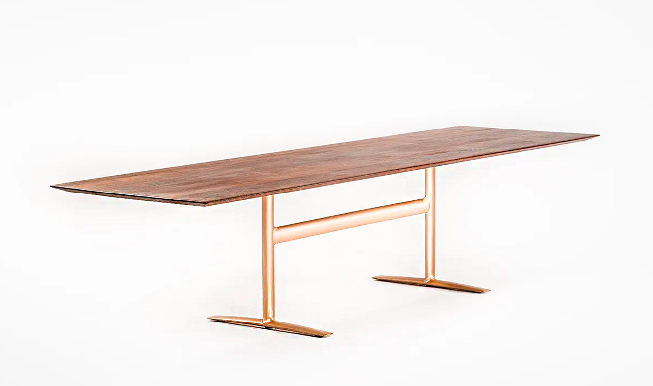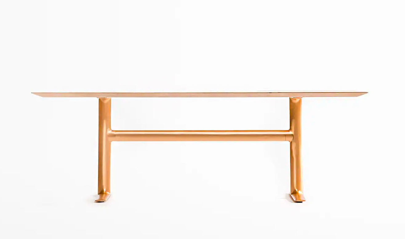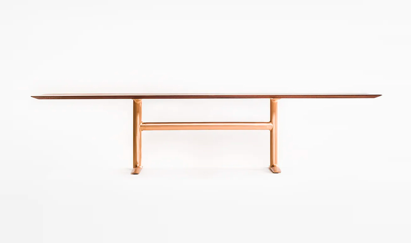 ブロンズの特徴は他の金属素材と比較して比重が重いため、小さなサイズであっても安定性を確保できることが大きな魅力です。その特徴を活かして、最大 3200ミリまでの長尺の天板幅をラインナップに揃えることができました。