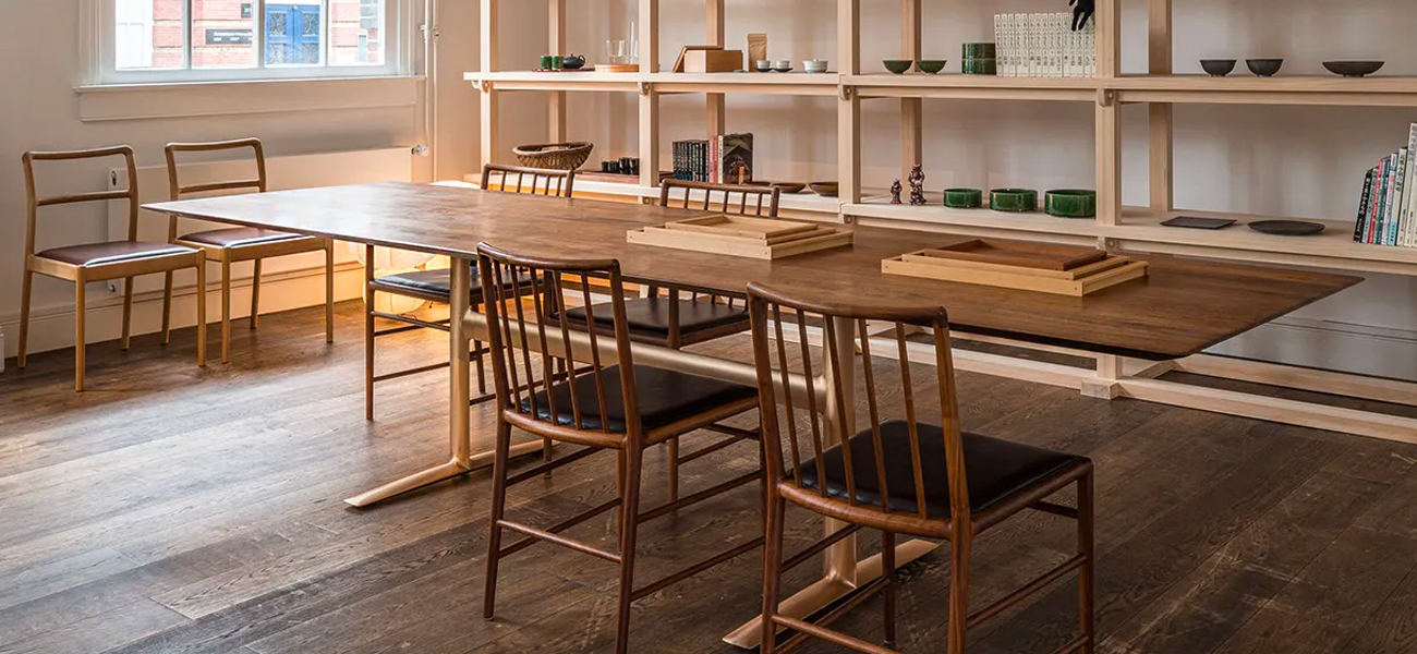 金属製のテーブル脚の場合、既製のパイプを曲げたり、溶接して作られる工業的なものが多くを占めますが、この Bridge across のような大型の鋳物の脚は、職人の手仕事の技術が息づく日本の工芸だからこそ実現できた製品です。