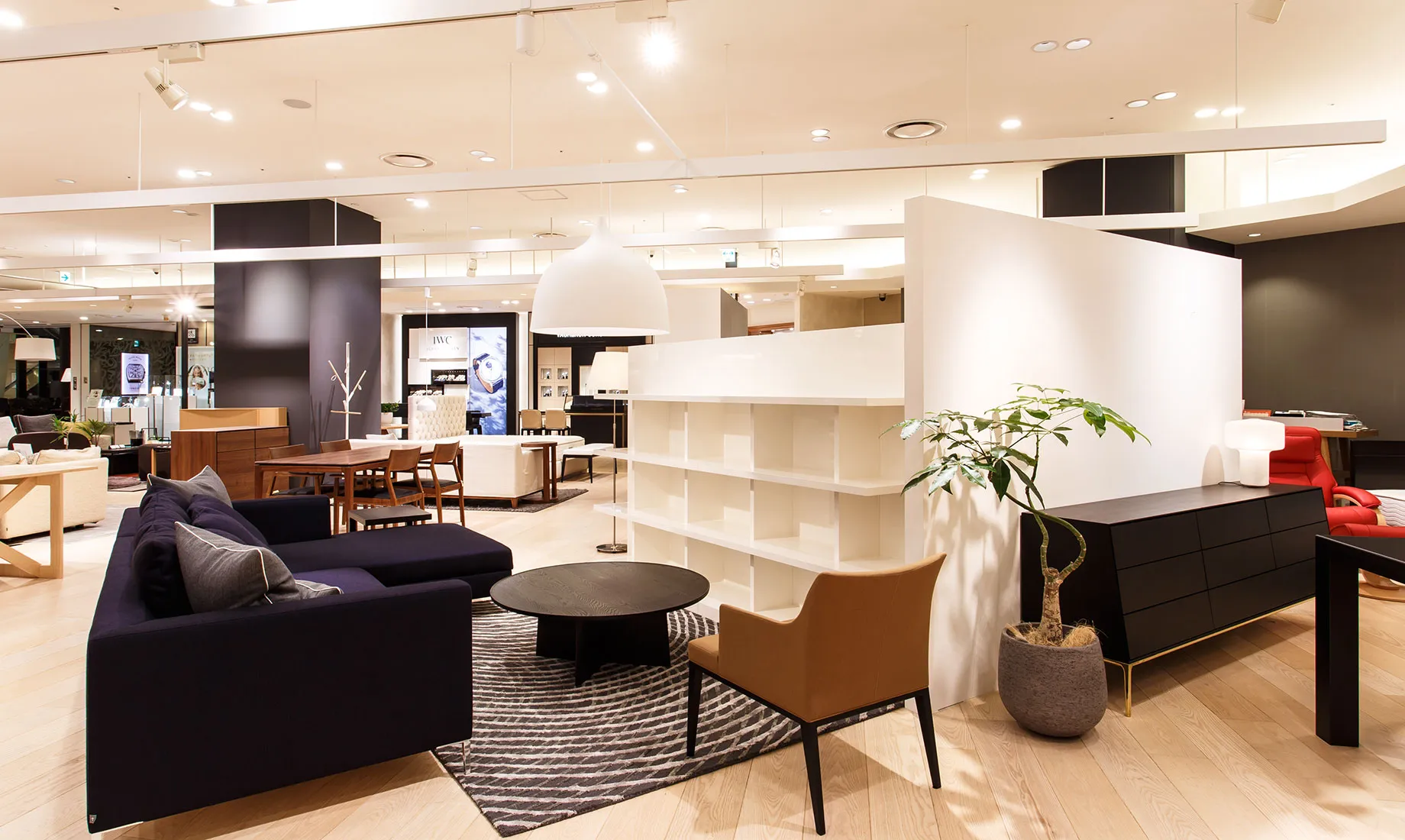 東京と並ぶ日本の中心を成す都市/大阪。西日本最大の百貨店「阪急うめだ本店」に位置するコンフォートQは、現代のライフスタイルに合わせて空間とスタイリングを提案するインテリアショップです。国内外のメーカーやブランドが集まり、住空間をトータルで作り上げています。