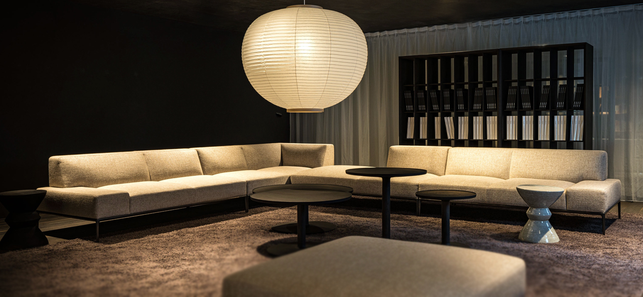 私たちのこれまでのソファでは、プロポーションを意識した低い背もたれのソファが多かったのですが、全体のホリゾンタルな広がり感を阻害することなく、実質的な座り心地を重視した背の高さに設定しました。