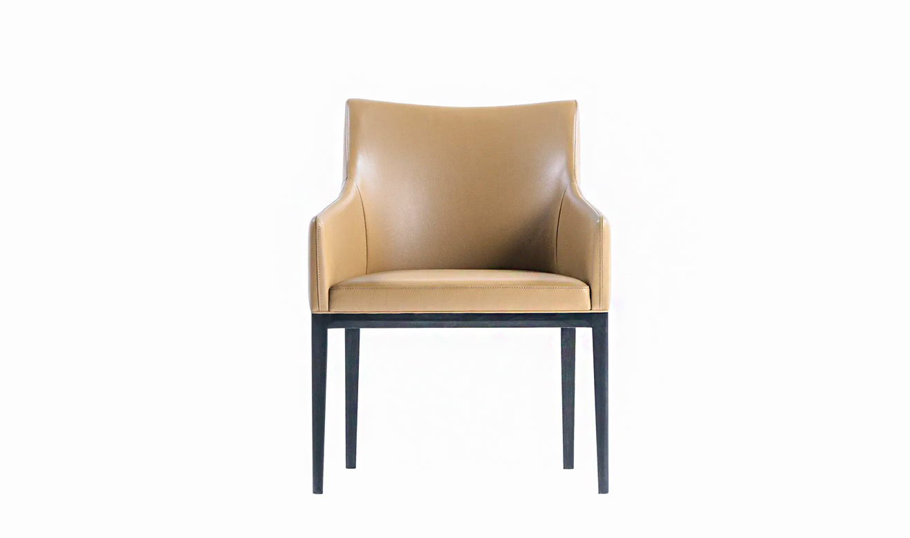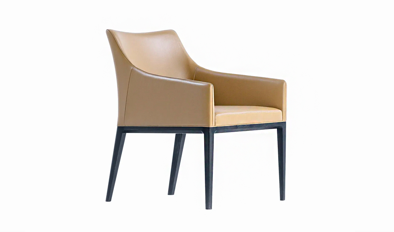 ワルツを踊るようにスイング感を持たせ、エッジの効いた空気感を大切にしました。座った時に両腕がアームに自然に馴染み、座面は手前から奥にかけて幅を少し絞り込み、背中を優しく包み込む形状にしています。