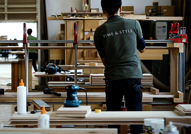 Meet up Furniture Asahikawa 2023の開催に合わせ、私たちの家具工場、Time & Style Factoryのオープンファクトリーを開催します。日本各地から届いた丸太を自然乾燥させている土場から、製材、乾燥を経て、家具へと加工する独自のプロセスをご案内します。