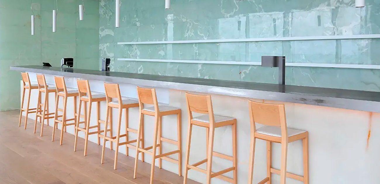 My Funny Valentine はバーカウンターに置かれているイメージから生まれた、大人の時間と共にあるシンプルな椅子です。無垢材を削り出したフレームは装飾的な要素を排除し、できるだけ簡潔な言語を用いて デザインしました。ダイニングチェアの意匠をそのままハイチェアへと転換しています。