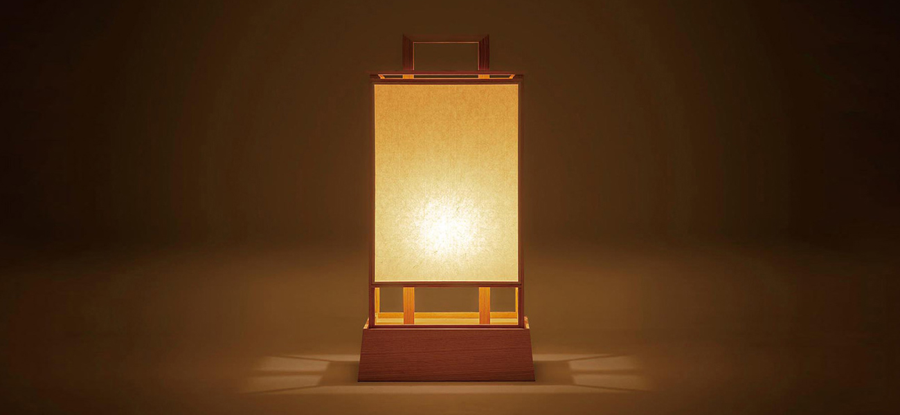 行燈とは1600年頃(江戸時代)から日本人の生活の中で多く使われていた灯具で、日本の伝統的な灯りの一つです。木のフレームに和紙を張り、蝋燭や油を原料とした行燈は、和紙を通して詩的な陰翳を生みます。また、部屋から部屋へ持ち運ぶことができるのも特徴です。