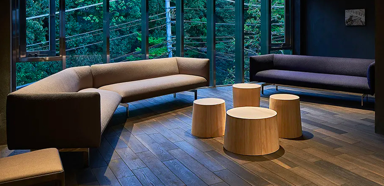 家具には、楢や欅といった硬くて丈夫な広葉樹が多く使われますが、 日本の国土の多くを占める針葉樹である杉を使った家具づくりは、私たちに新しい視点を与えてくれました。杉の温かみのある質感や軽やかさは空間に心地よい間合いを作ります。