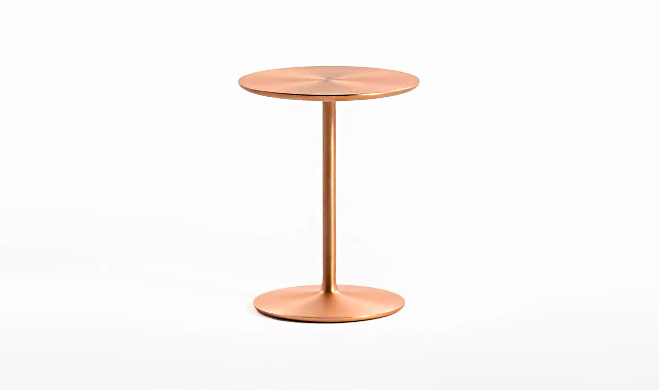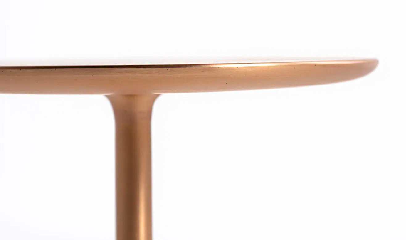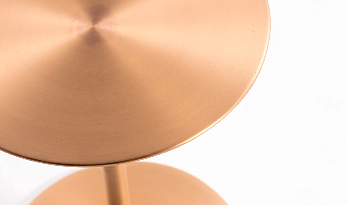 金属だからこそ、天板は薄く、支柱は細く、繊細で清楚な佇まいを持ちながら、見た目とは対照的に持ち上げたときの重量感と重厚な存在感は、本物の素材だけが持つ魅力です。