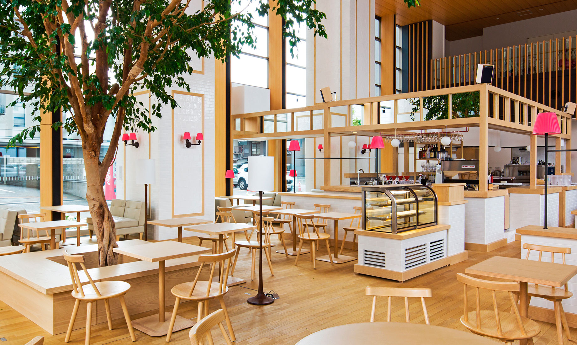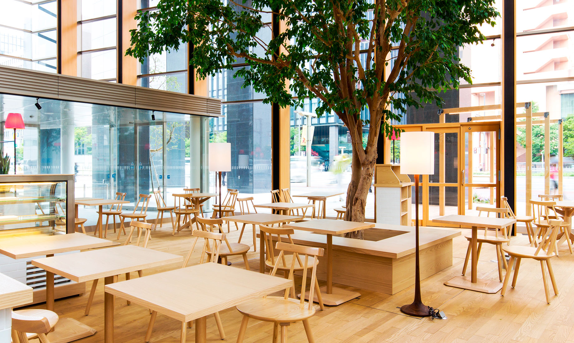 桜十字福岡病院の1 階にあるラウンジダイニング「Rejoyce」は、人が行き交い、病院と街を繋ぐ場所として、新しいライフスタイルを提案するスペースを目指してオープンしました。当社は、内装に合わせたこだわりのグレーベージュ色の特注レザーでソファやベンチを製作しました。病院内のため、消毒にも耐えられる耐水性のレザーを採用。親しみやすい印象のウィンザーチェアやソファがインテリアデザインを引き立てています。