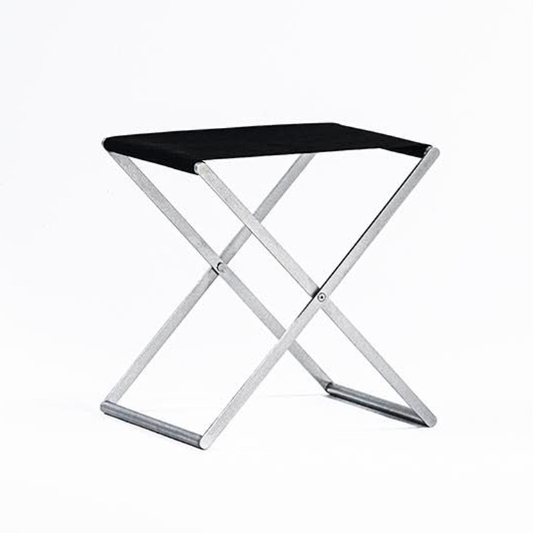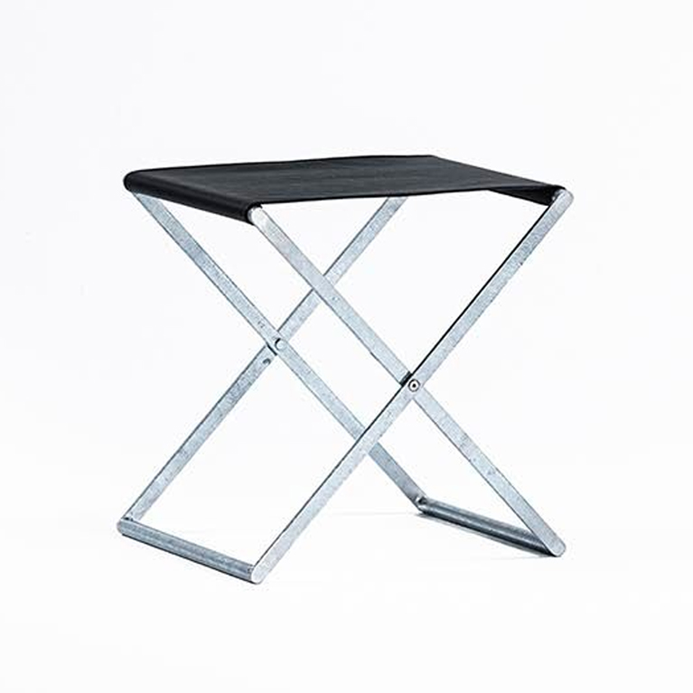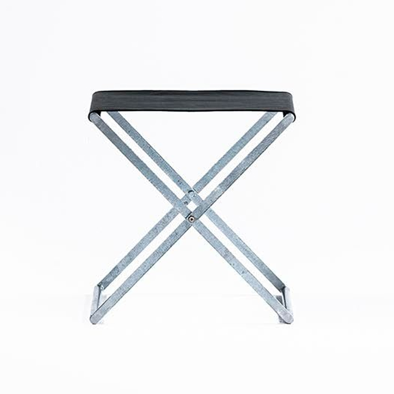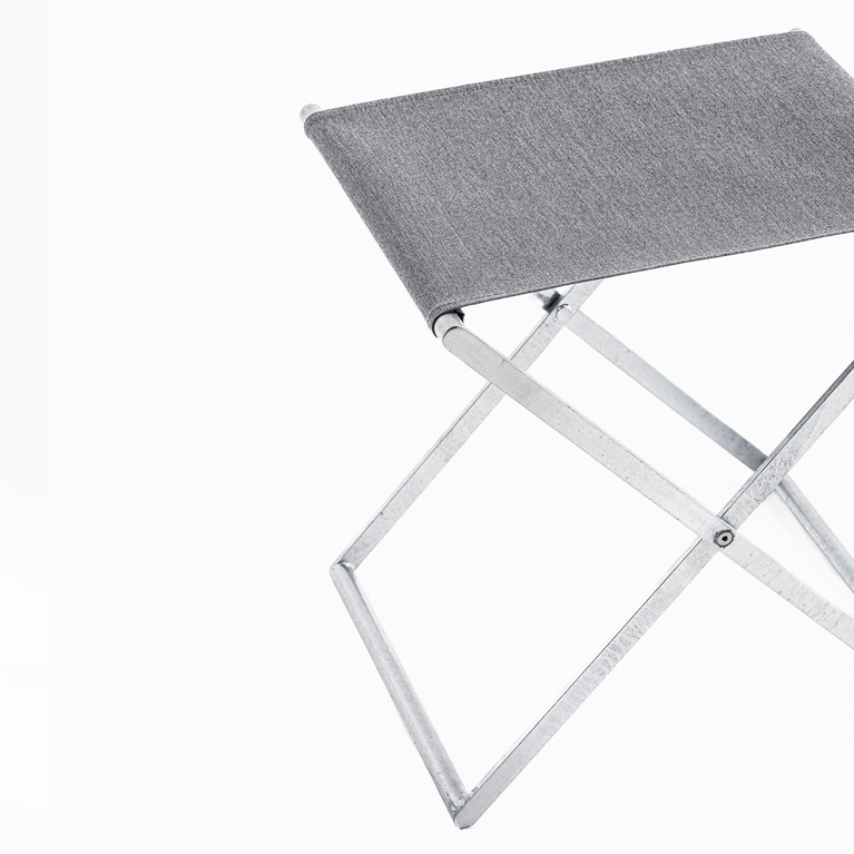 溶融亜鉛メッキ仕上のコレクションは屋外でも使用可能で、スツールは折り畳んで収納ができる構造となっている。屋内の落ち着いた雰囲気にも合うように、ステンレスのバイブレーション仕上げもバリエーションに加えた。コンパクトなサイズにまとめられたテーブルとスツールの組合せは、限られたスペースを有効に活用できる。