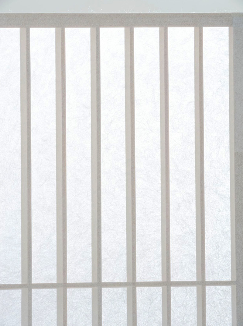 和紙貼りのほかに秋田杉のフレームのみで構成されたShojiも用意しました。格子の優美な緊張感が空間にリズムを生みます。