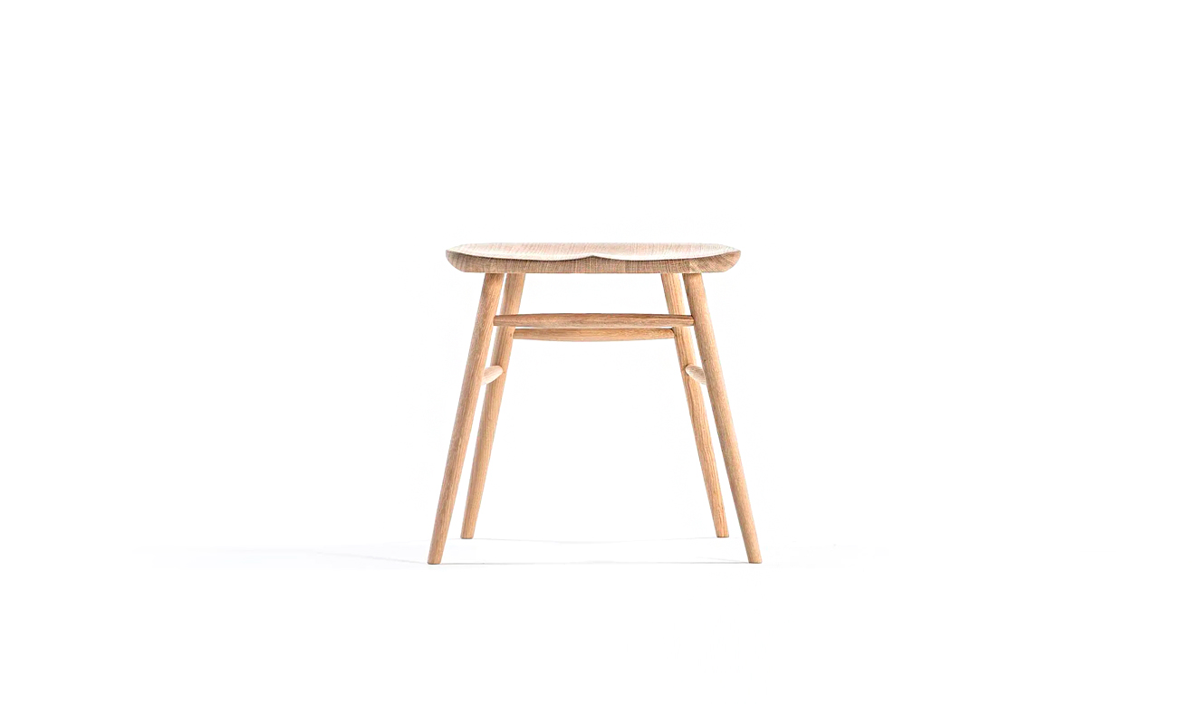 世界で愛され続けているウィンザーチェアを基本デザインとしたスツールです。ウィンザーチェアは厚い木製の座面に穴を開けて脚や背を直接差し込み、木のしなりや伸縮を吸収して、椅子の強度を保つ合理的な構造をしています。