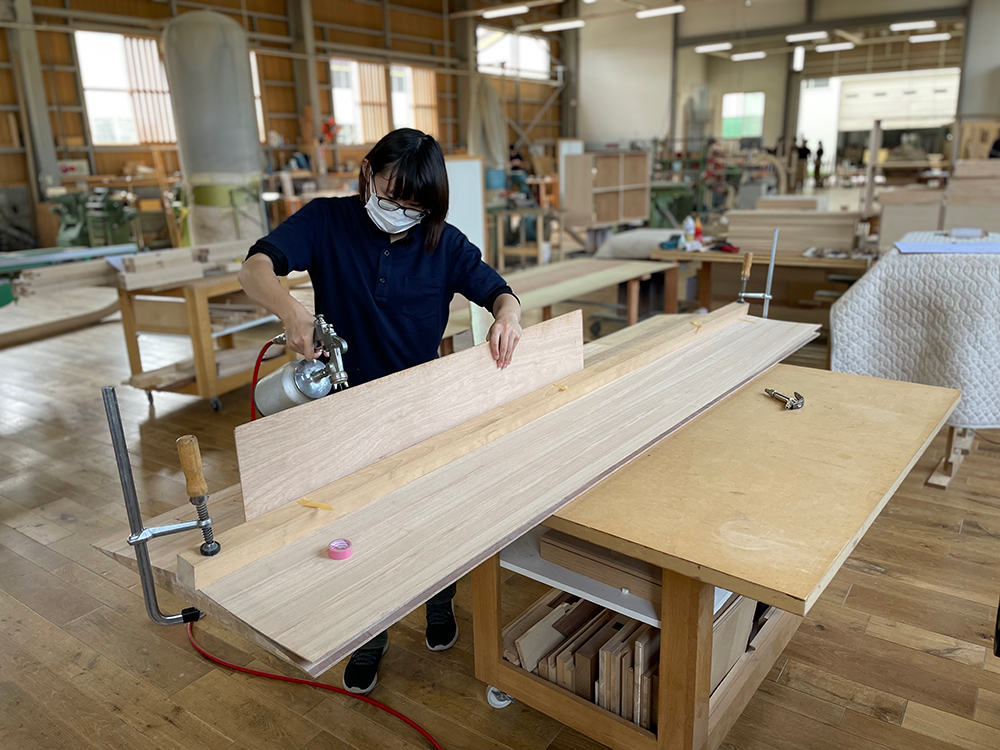 自分が製作に携わった家具が様々な工程を経て、お客様の手元に届き、使っていただけることがとても魅力的でやりがいを感じます。製作の現場では、お客様にお会いする機会はほとんどありませんが、先日の東京での研修では、店舗に立って、お客様に製品をご案内することができました。とても緊張しましたが、どのようなお客様が、どのような気持ちで家具を探されているのかを垣間見ることができ、お客様を想像しながら家具づくりをすることが出来るようになったように思います。
