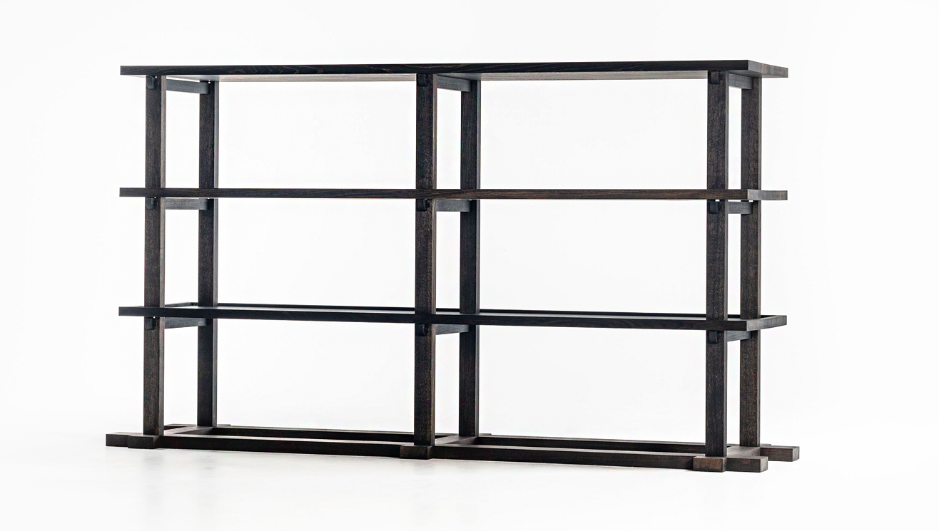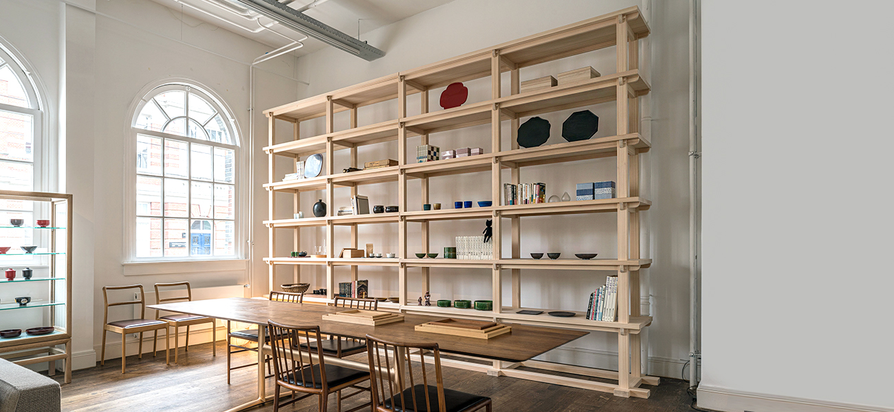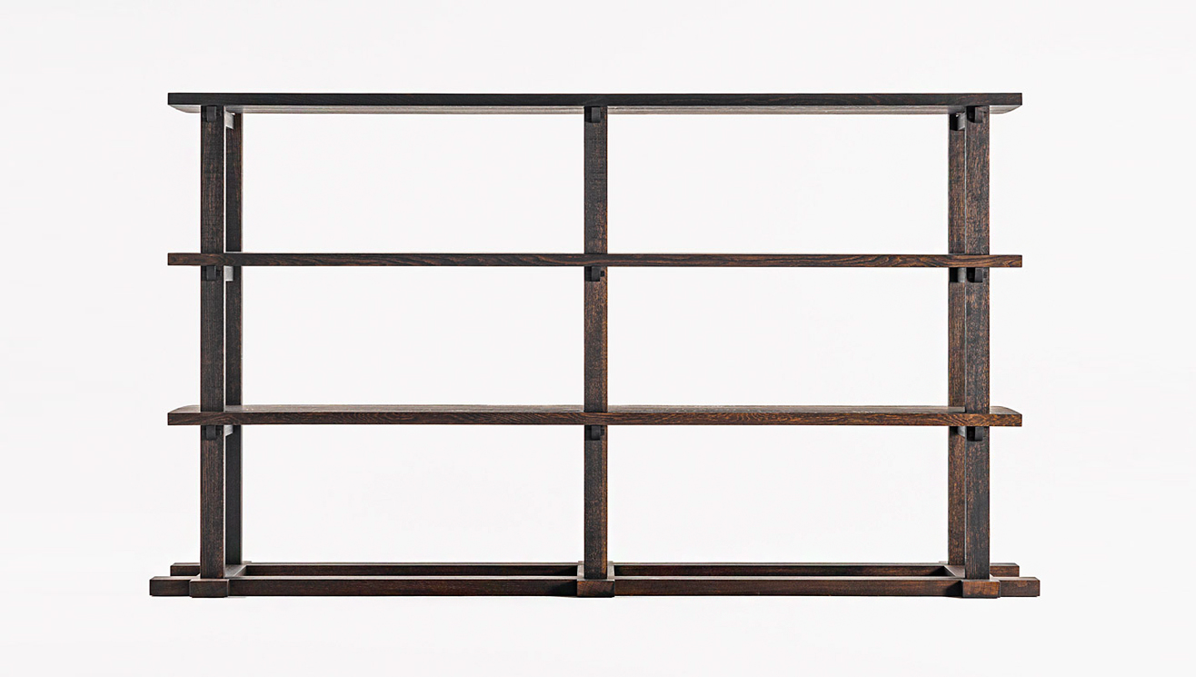 東大寺の正倉院に棚厨子と言われる木製の棚が現存しています。 1300 年前に作られたその棚は、間口約 260 センチ、高さ140 センチで、6 本の柱を立て、3 枚の棚板を渡しただけのシンプルで実用的なものです。現存する日本の家具としては最も古く、日本の棚の原形にもなっています。無垢の杉材で作られたその棚は、楽器などの調度品を収納するためのものだったと言われています。鋸がまだない時代に、職人たちの知恵と日本人の研ぎ澄まされた感性によって、釘を使わずに木のパーツのみで組み立てられたその姿は、作為のない、素朴な構造でありながら、堂々とした威厳すら感じさせます。