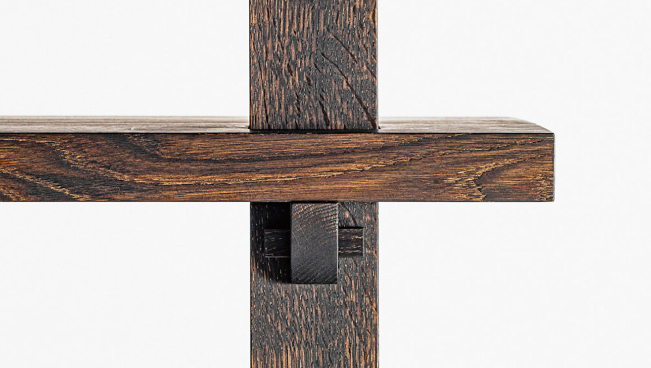 この棚厨子は、1300 年前に建てられた東大寺や薬師寺、そして世界で最も古い木造建築である法隆寺と言った古典建築の構造が引用されています。1000 年以上もの間、何度も繰り返された大地震や台風から、数百トンもの重量を持つ建築物を守ってきた高い耐久性と耐震性による優れた構造です。現代を生きる私たちの想像を遥かに超える木材の強度と当時の工人たちの卓越した知性と先見性を、現存するこれらの古典建築から知ることができます。