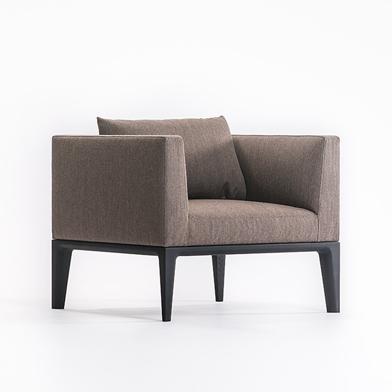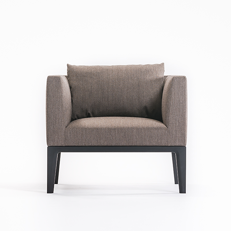 コンパクトで座り心地が良く、限りなくシンプルなソファを目指しました。特徴的な意匠を追い求めるのではなく、無駄のない意匠性と機能性のバランスを何処まで図ることができるかをテーマとしました。