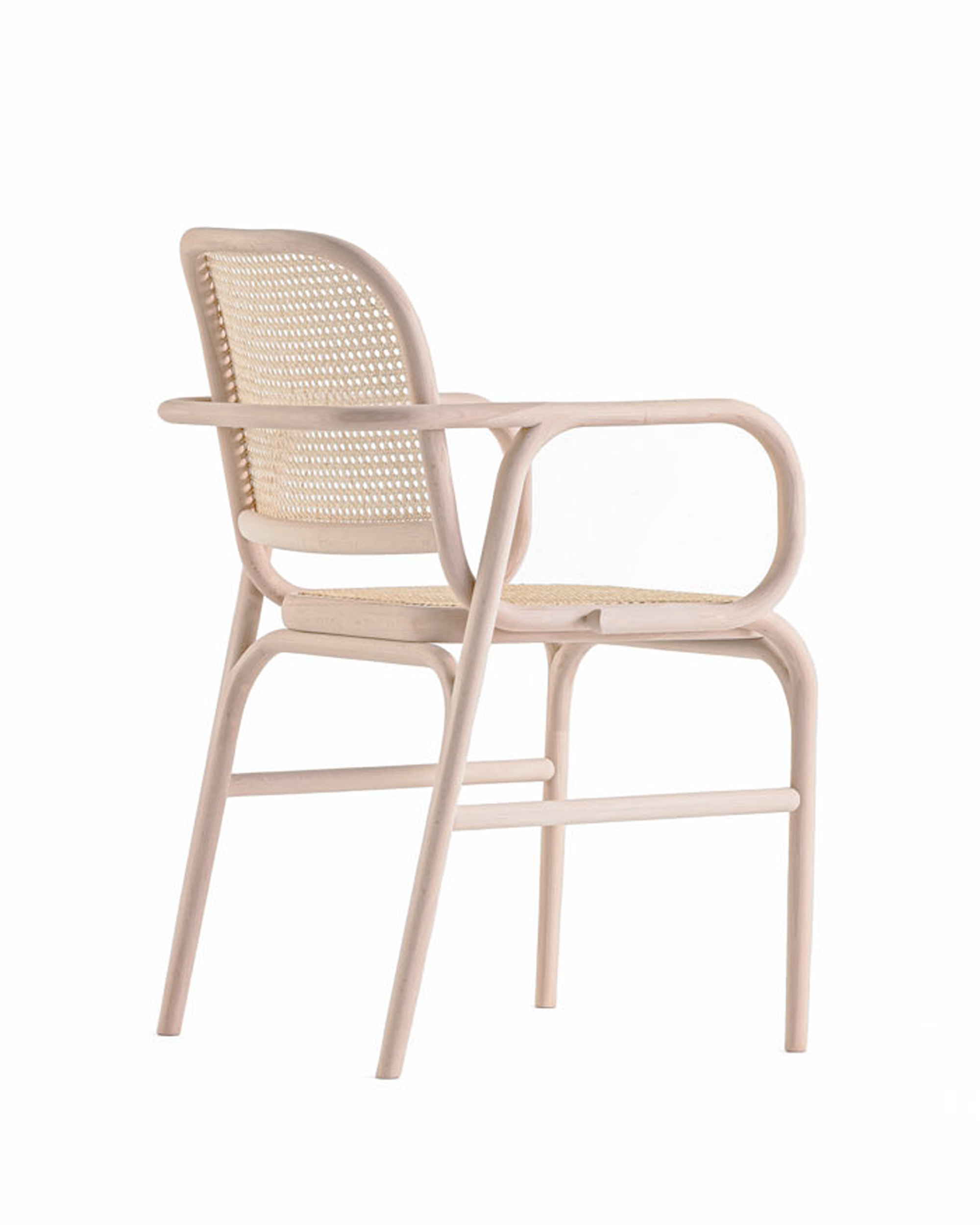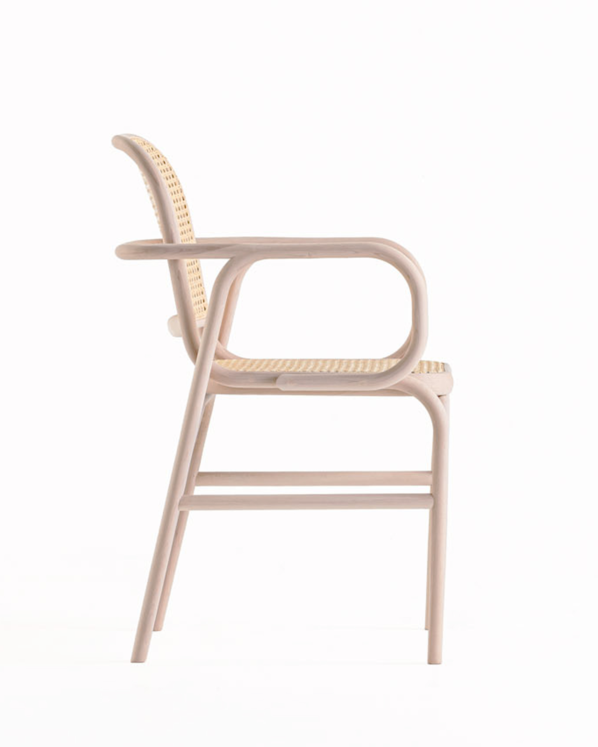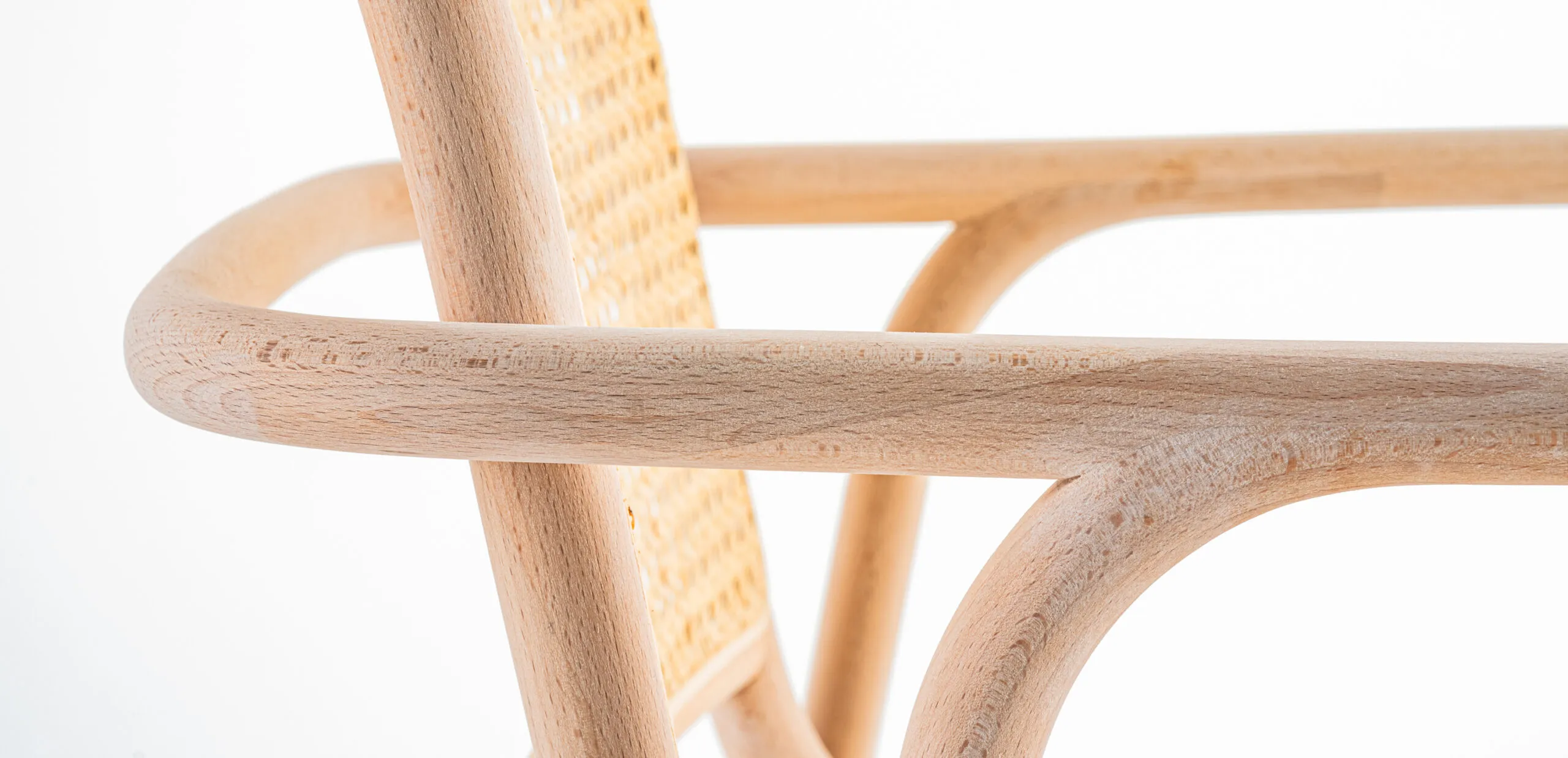 曲木は、木の美しさと強さを活かしながらも、柔らかで流れるようなデザインを生み出す技術です。私たちはいままでもその技術を用いて曲木の椅子を製作してきましたが、その熟練の職人たちが長年培ってきた手仕事の技を昇華させ、奇をてらうことなく実直に、かつ新しい表現をもった曲木椅子を作り出す事を目指しました。曲木は曲線美が魅力ですが、そこに削りの加工を加え、独自の楕円の断面形状を実現させました。全体的になめらかに繋がり、変化して行く楕円形状は、プロダクトにいっそうの立体感と個性をもたらします。また、その手作業による精密な削りは温かみを感じさせる滑らかな手触りと、体を包み込むような優れたフィット感にも繋がります。