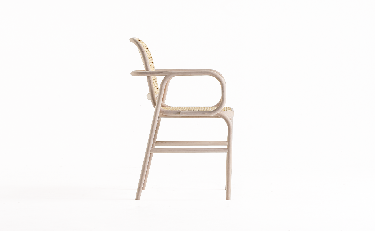 伝統技術に対する深い敬意のもと新しい挑戦を取り入れた今回の曲木のチェアは、現代のライフスタイルに調和するモダンな軽やかさがあり、空間に心地よさをもたらします。手間と時間をかけ、手仕事の跡を感じることのできるこの曲木椅子は、普遍的で時を超えて愛される存在であることを目指しています。