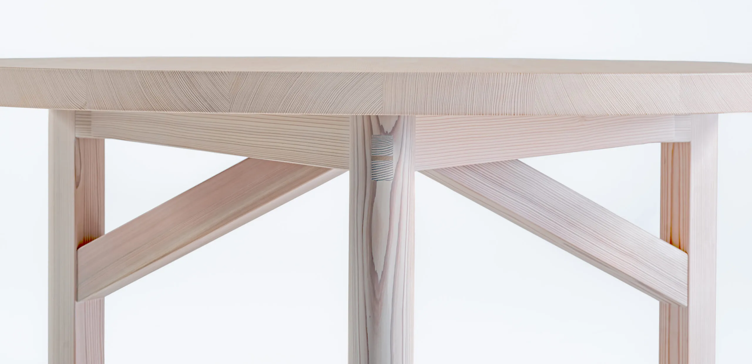 Yoshino table は日本の木工の伝統、特に釘を使わない宮大工の仕口からインスピレーションを得ながら日本とデンマークのエッセンスを取り入れています。奈良県吉野産の杉材は 150 年以上かけて丹念に育てられた木から切り出された美しい柾目が特徴です。吉野の豊かな土壌は自然の美しさが引き立つ、きめ細やかでまっすぐな木目を育みます。