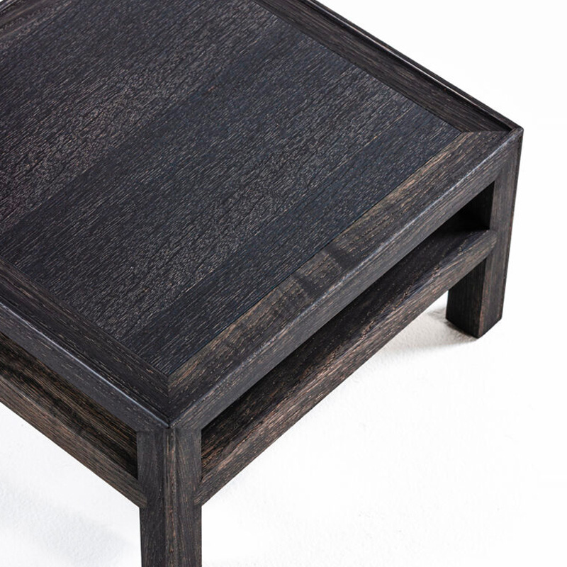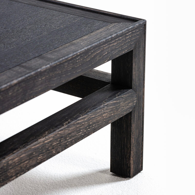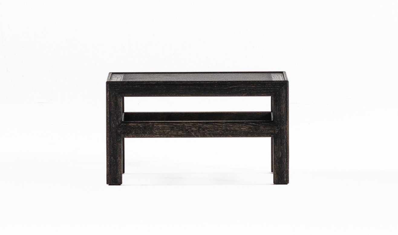 床に座る文化を持つ日本では、かつて御膳に一人ひとりの食器を載せて食事をしていました。現代でも床に座って寛ぐ習慣はあり、傍らの Za に飲み物や読みかけの本などを置くサイドテーブルとして製作しました。「こぼれ止め」としての玉縁が細く施されている、控えめな佇まいとなっていますが、脚や天板の接合部は精度が求められる木工技術が凝縮しています。出来るだけ装飾を抑え、気軽に移動できる小ぶりなサイズ感が、使い勝手のよい生活の中の道具となることをイメージしました。